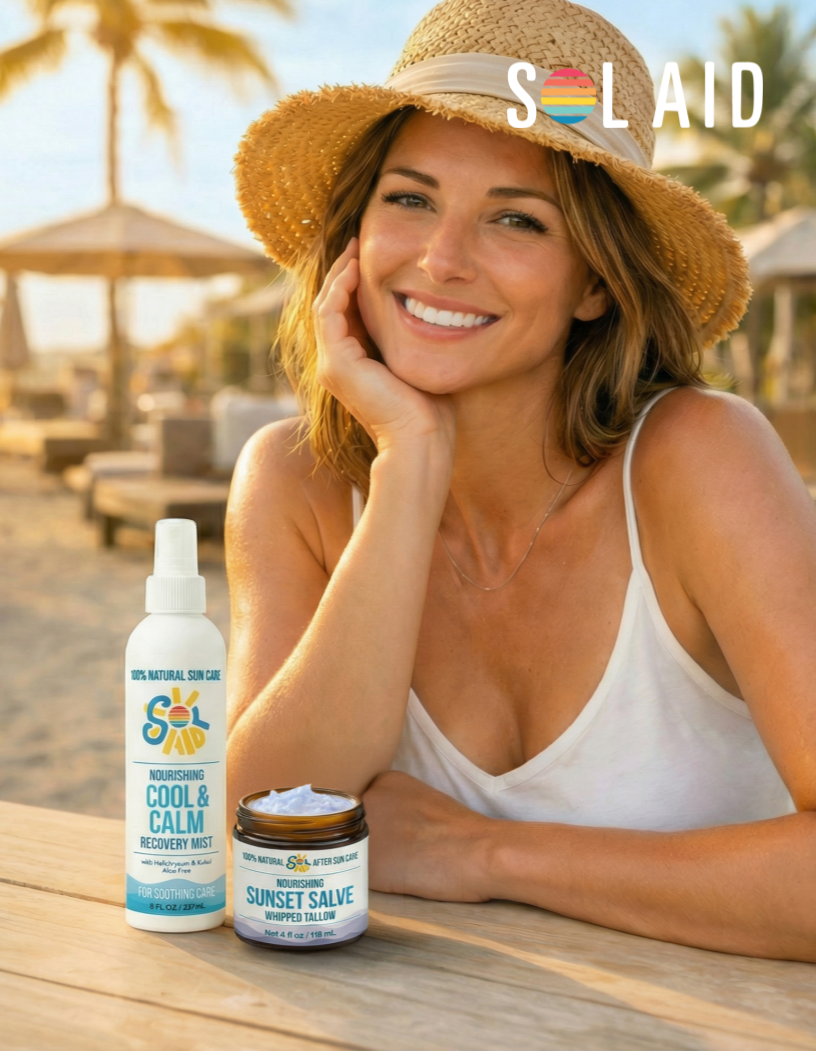 Sol Aid is made with ingredients your skin recognizes - never synthetic additives it doesn’t. Our formula blends nature’s oldest remedies, like apple cider vinegar and calming essential oils, into a refreshing mist that supports the skin’s microbiome after sun exposure. No preservatives. No chemicals. Just real, effective care that feels as good as a sea breeze on a hot day.